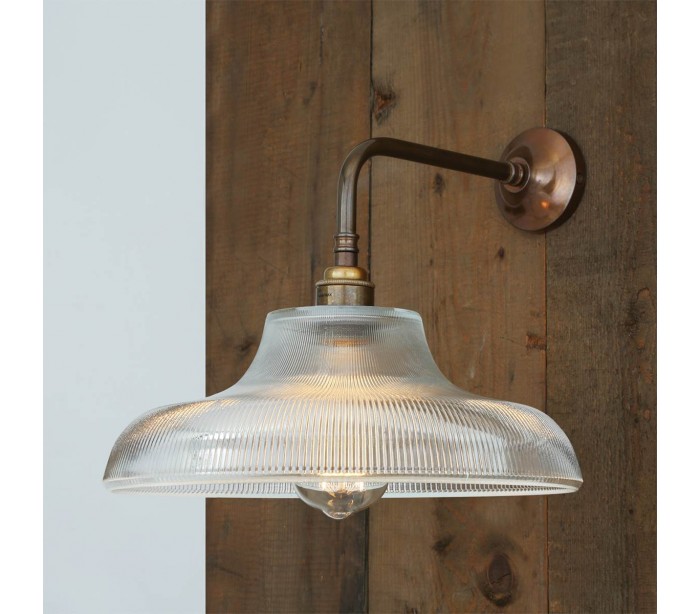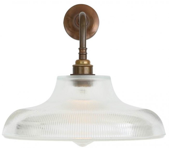 Mono væglampe fremstillet i et industrielt design i antik messing og med skærm i glas. Lampen måler 36 cm i højden og anvender 1 x E27 lyskilde (Ekskl.).