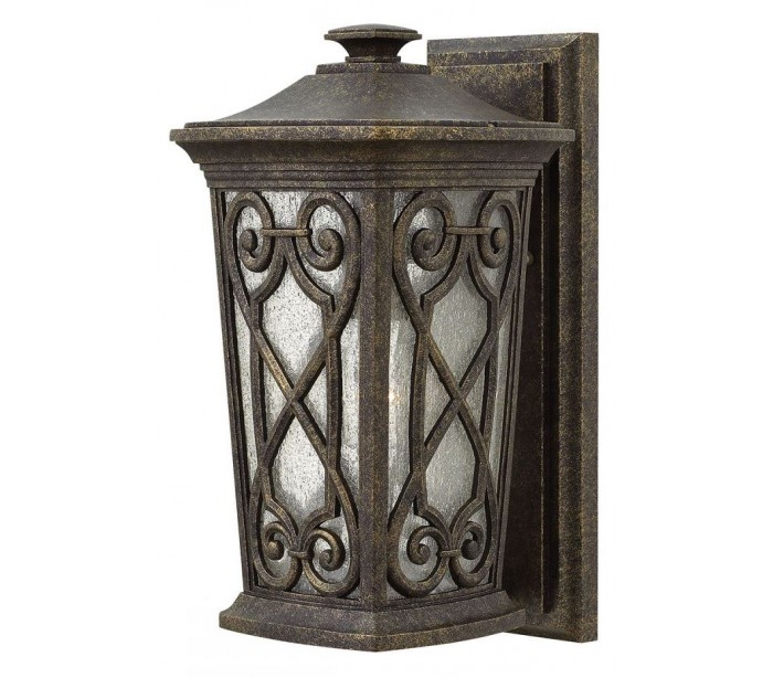 Enzo væglampe i et rustikt design fra amerikanske Hinkley. Lampen leveres til europæisk standard til 1 x E27 lyskilde og måler 35,8 cm i højden og 20,3 cm i bredden.