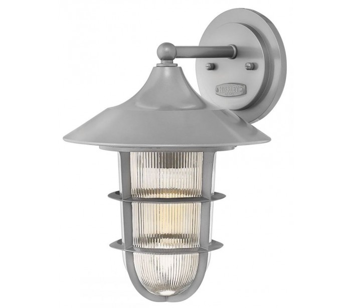 Marina væglampe i et industrielt design fra amerikanske Hinkley. Lampen leveres til europæisk standard til 1 x E27 lyskilde og måler 36,5 cm i højden og 25,6 cm i bredden.