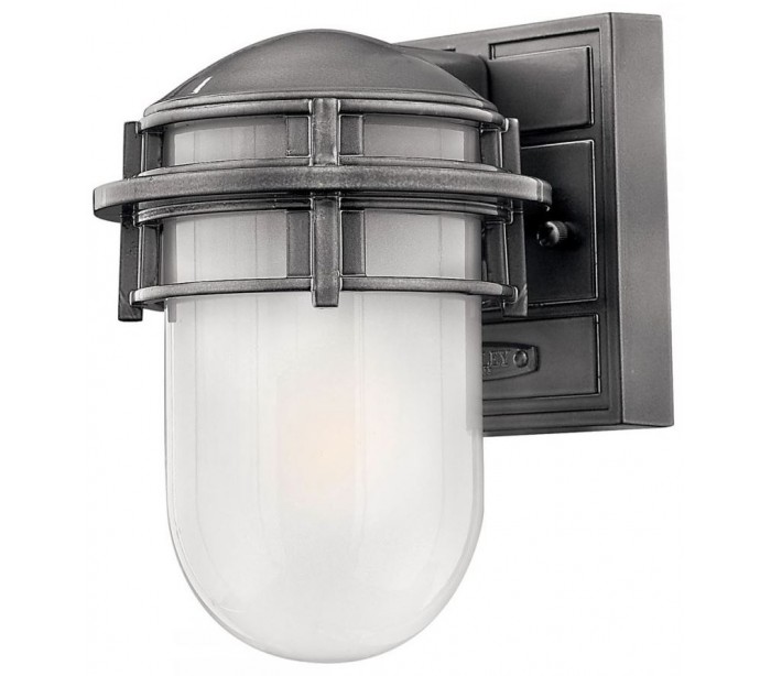 Reef væglampe i et industrielt design fra amerikanske Hinkley. Lampen leveres til europæisk standard til 1 x E27 lyskilde og måler 20,3 cm i højden.