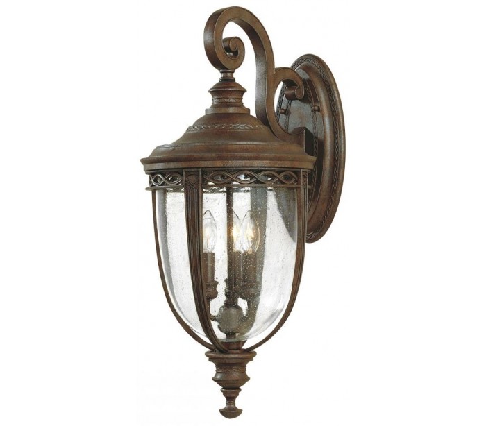 English Bridle væglampe i et rustikt design fra amerikanske Feiss. Lampen leveres til europæisk standard til 3 x E14 lyskilder og måler 62,2 cm i højden.