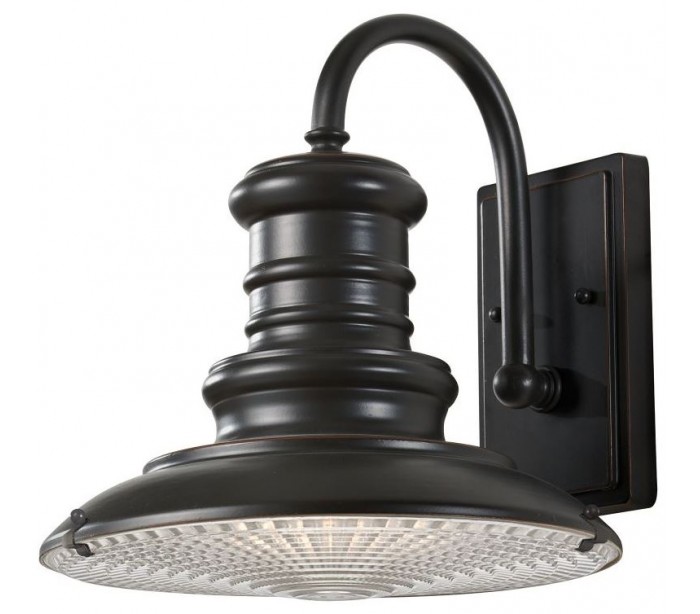 Redding Station væglampe i et rustikt design fra amerikanske Feiss. Lampen leveres til europæisk standard til 1 x E27 lyskilde og måler 31,8 cm i højden.