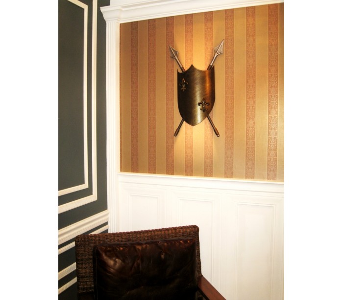 Crusader væglampe fra britiske Elstead. Lampen måler 63 cm i højden og leveres til europæisk standard til 2 x GU10 lyskilder. Lampen er udført i et design af brændt bronzelakeret stål.