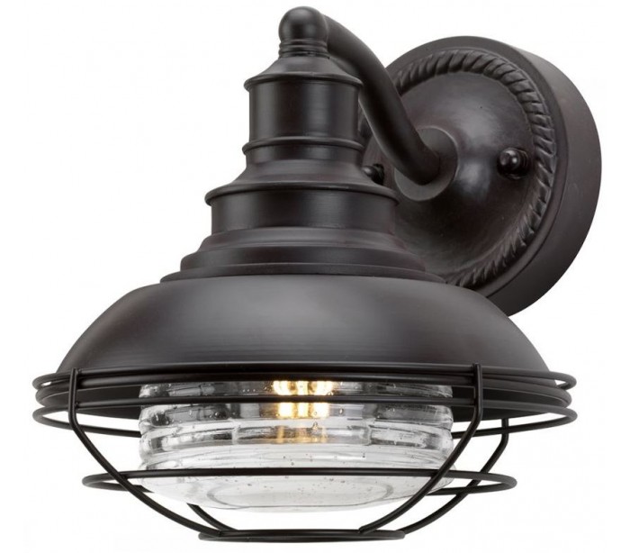 Euston væglampe i et rustikt design fra britiske Elstead. Lampen leveres til europæisk standard til 1 x E27 lyskilde og måler 22 cm i højden.