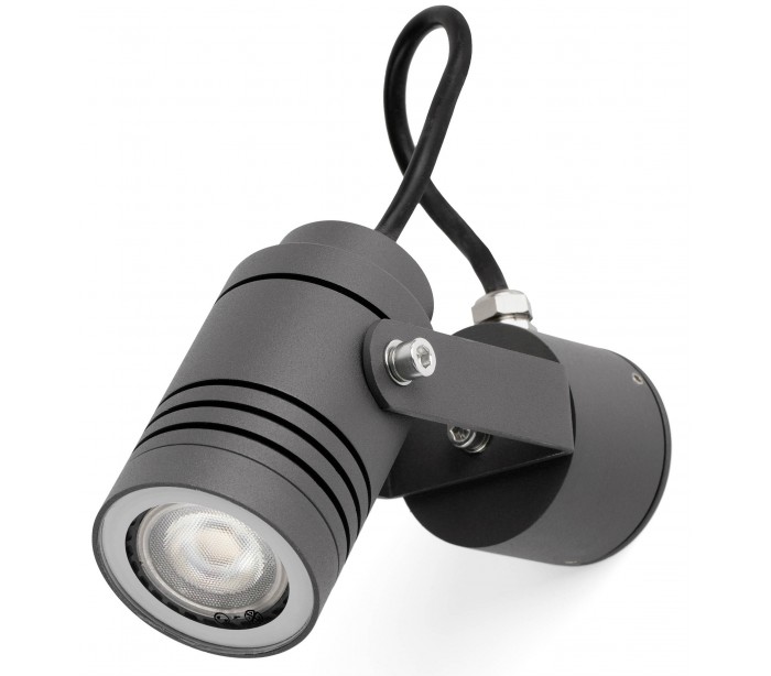Lit spot væglampe i et moderne design, fremstillet i mørkegrå lakeret aluminium. Lampen måler 21 cm i højden og anvender 1 x GU10 lyskilde på max. 8W (Ekskl.). Lampen kan justeres i ønsket retning.