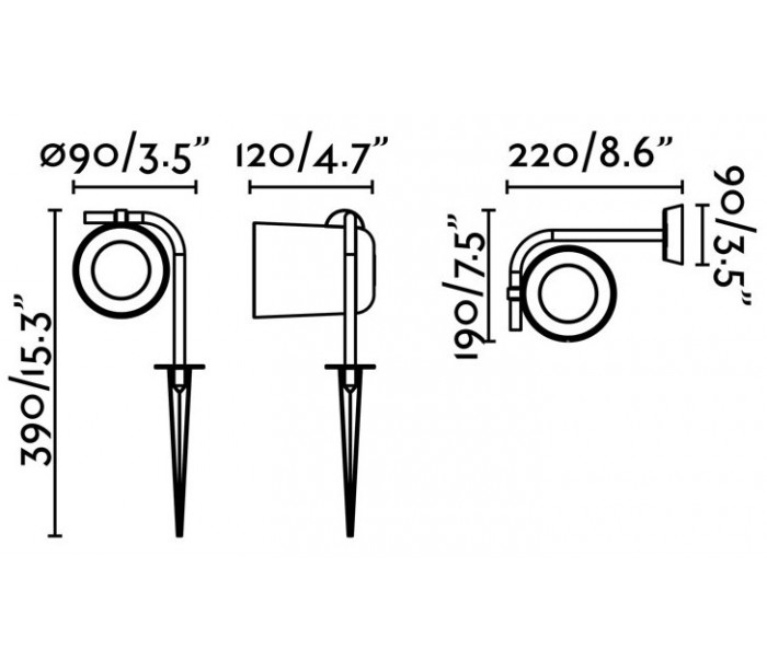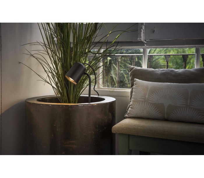 Flow spot væglampe i et moderne design, fremstillet i sortlakeret metal. Spotten kommer med spyd, således den også kan anvendes i bede eller beplantninger istedet. Lampen måler 19 cm i højden og anvender 1 x GU10 lyskilde på max. 8W (Ekskl.). Højde som væglampe er 19 cm og som bedlampe på spyd er 39 cm totalt.