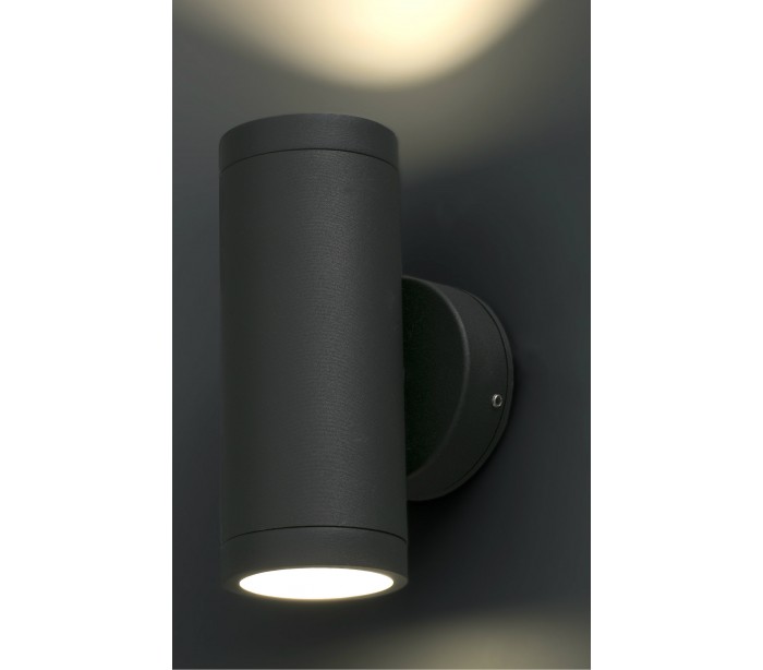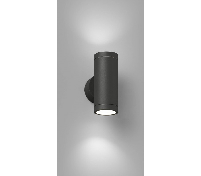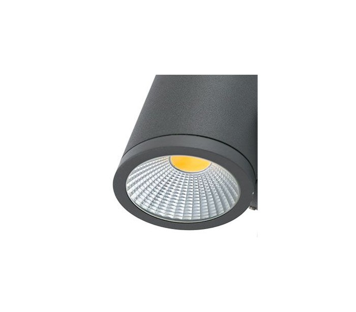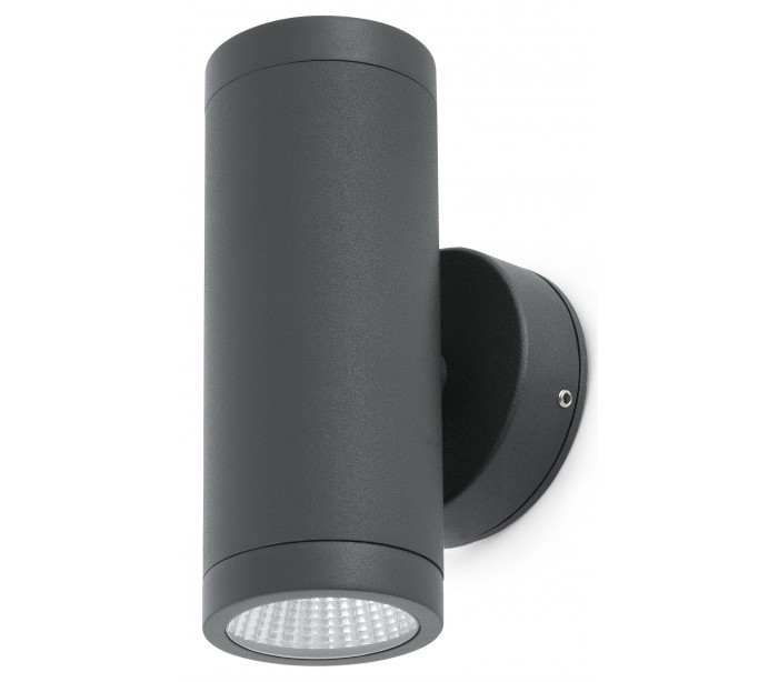 Cobo udendørs væglampe i et moderne design, fremstillet i mørkegrå lakeret aluminium. Lampen måler 13,5 cm i højden og anvender 1 x COB LED lyskilde på 12W (Inkl.). Lampen sender lyset op og nedenud.