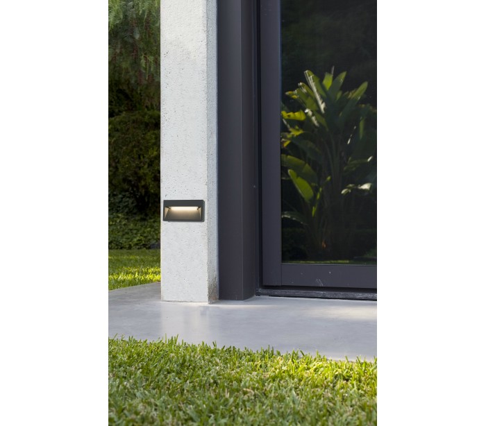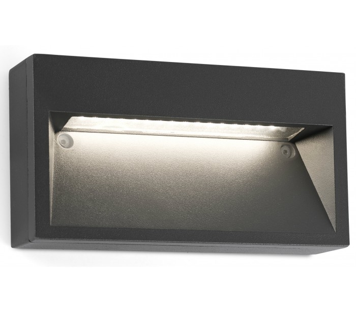 Path udendørs væglampe i et moderne design, fremstillet i mørkegrå lakeret aluminium. Lampen måler 20,2 cm i bredden og anvender 1 x SMD LED lyskilde på 9W (Inkl.). Lampen kræver ikke indbygning i væggen.