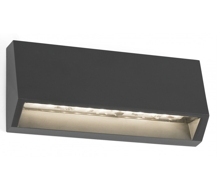 Must udendørs væglampe i et moderne design, fremstillet i mørkegrå lakeret abs. Lampen måler 15,8 cm i bredden og anvender 1 x SMD LED lyskilde på 3W (Inkl.). Lampen kræver ikke indbygning i væggen.
