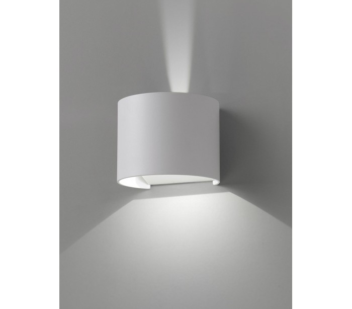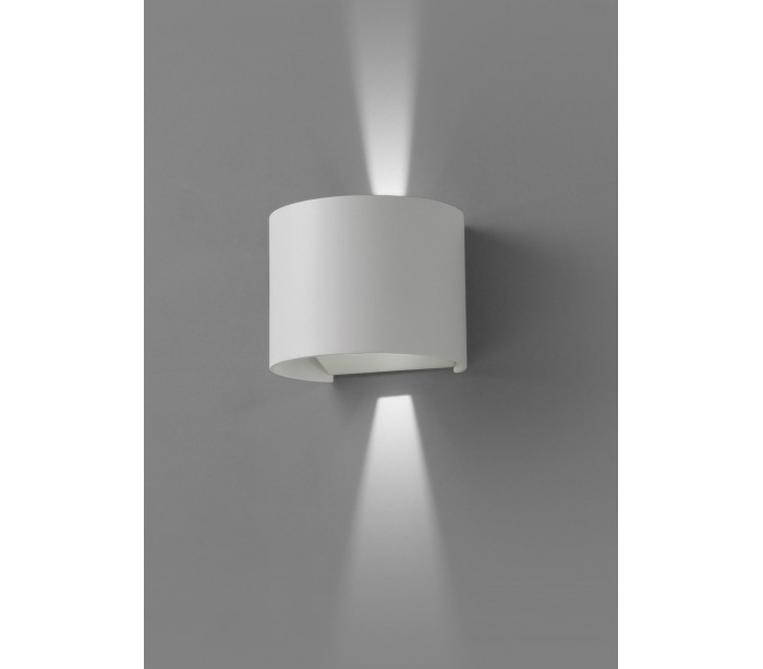 Sunset udendørs væglampe i et moderne design, fremstillet i hvidlakeret aluminium. Lampen måler 11,1 cm i højden og anvender 2 x CREE LED lyskilde på 3W (Inkl.). Belysningens udsending kan justeres via vippeplader.