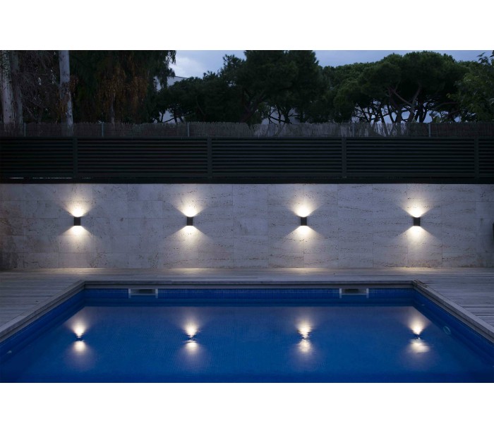 Ling udendørs væglampe i et moderne design, fremstillet i mørkegrå lakeret aluminium. Lampen måler 15,7 cm i højden og anvender 1 x HIGH POWER LED lyskilde på 6W (Inkl.). Lampen sender lyset op og nedad.