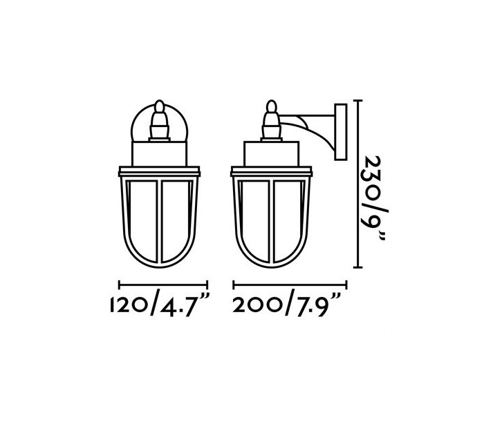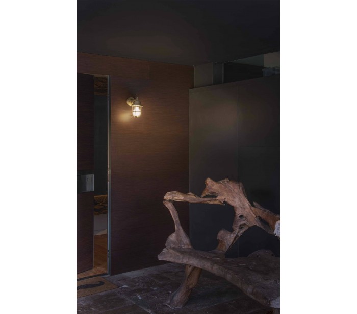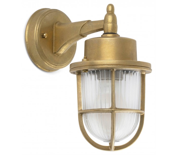 Nahir udendørs væglampe i et antikt design, fremstillet i antik messing og klart glas. Lampen måler 23 cm i højden og anvender 1 x E27 lyskilde på max. 60W (Ekskl.).