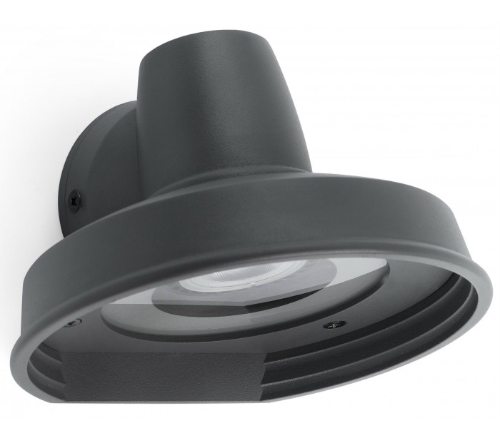 Bronx udendørs væglampe i et moderne design, fremstillet i mørkegrå lakeret aluminium og klart glas. Lampen måler 9,6 cm i højden og anvender 1 x GU10 lyskilde på max. 8W (Ekskl.).