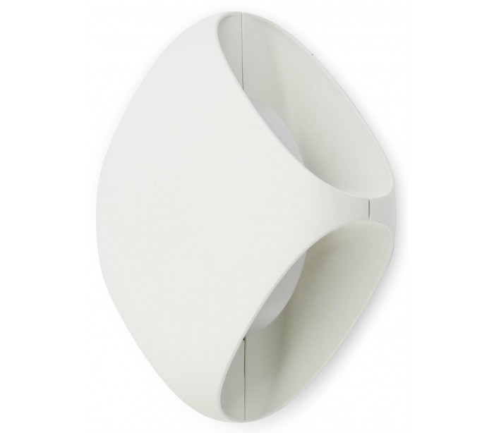 BU-OH udendørs væglampe i et moderne design, fremstillet i hvidlakeret aluminium. Lampen måler 15,5 cm i højden og anvender 1 x SMD LED lyskilde på 12W (Inkl.). Lampen sender lyset ud til alle 4 sider.