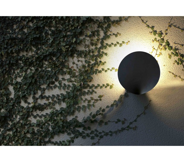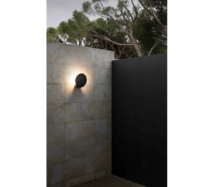 Lotus udendørs væglampe i et moderne design, fremstillet i mørkegrå lakeret aluminium. Lampen måler 9 cm i højden og anvender 1 x COB LED lyskilde på 18W (Inkl.).