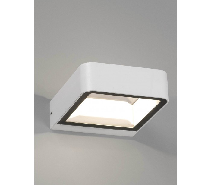 Axel udendørs væglampe i et moderne design, fremstillet i hvidlakeret aluminium. Lampen måler 4 cm i højden og anvender 1 x COB LED lyskilde på 6W (Inkl.).