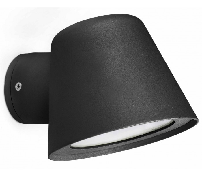 Gina udendørs væglampe i et moderne design, fremstillet i sortlakeret aluminium. Lampen måler 9 cm i højden og anvender 1 x GU10 lyskilde på max. 8W (Ekskl.).