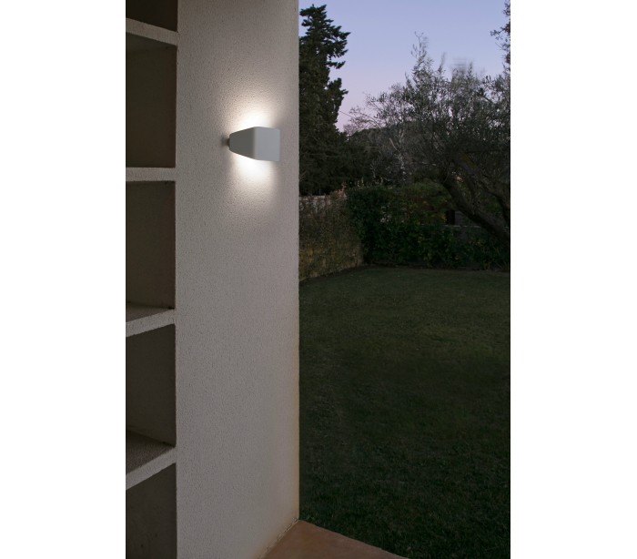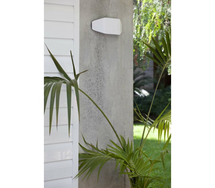 Future udendørs væglampe i et moderne design, fremstillet i hvidlakeret polycarbonat. Lampen måler 13,5 cm i højden og anvender 1 x E27 lyskilde på max. 20W (Ekskl.).
