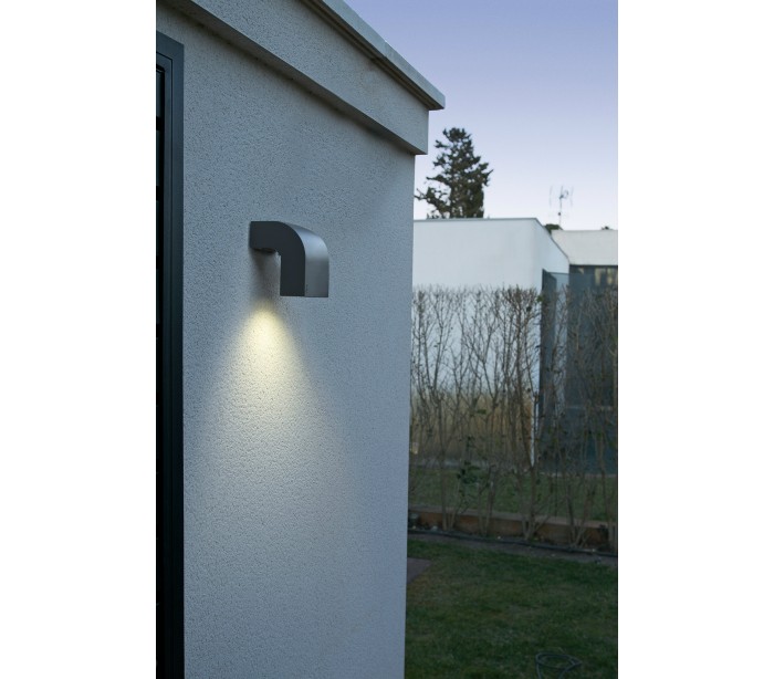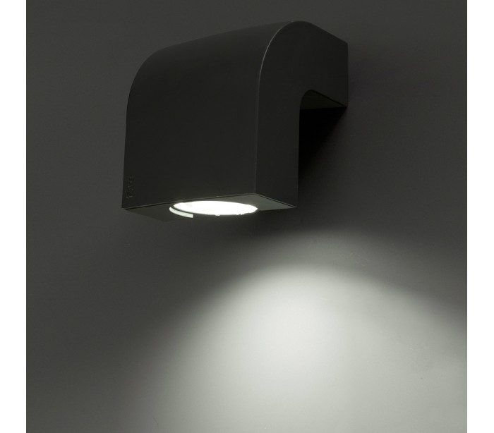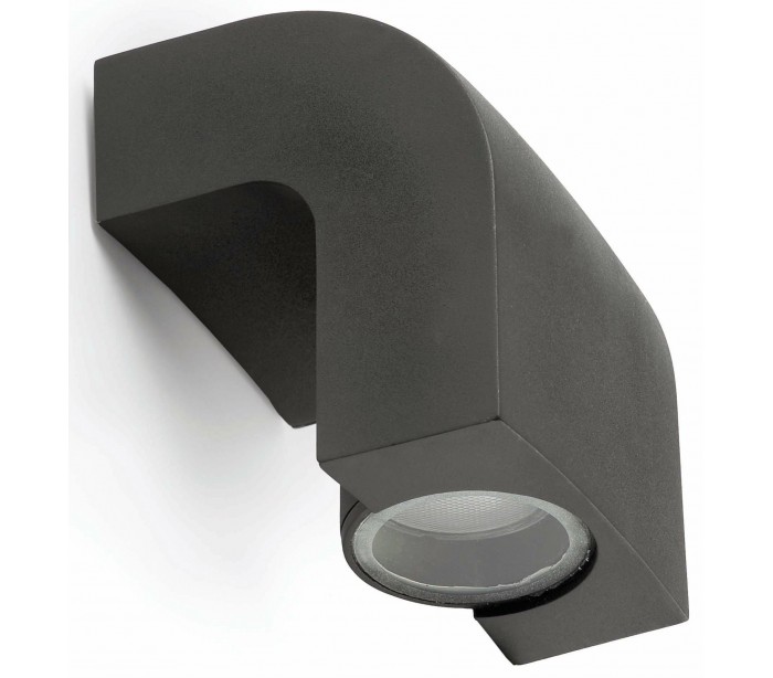 Klamp udendørs væglampe i et moderne design, fremstillet i mørkegrå lakeret aluminium. Lampen måler 13 cm i højden og anvender 1 x GU10 lyskilde på max. 35W (Ekskl.).