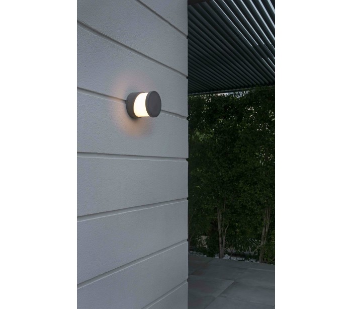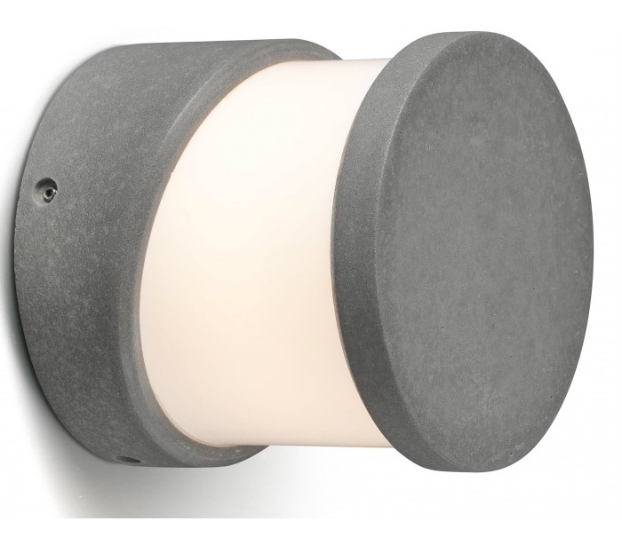 Block udendørs væglampe i et moderne design, fremstillet i grå beton og skærm i hvid akryl. Lampen måler 14,7 cm i diameter og anvender 1 x E27 lyskilde på max. 15W (Ekskl.).