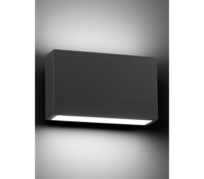 Tane udendørs væglampe i et moderne design, fremstillet i mørkegrå lakeret aluminium. Lampen måler 12 cm i højden og anvender 1 x SMD LED lyskilde på 6W (Inkl.).