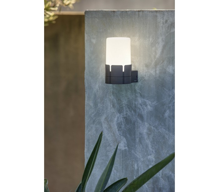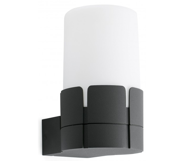Tram udendørs væglampe i et moderne design, fremstillet i mørkegrå lakeret aluminium og hvid polycarbonat. Lampen måler 19 cm i højden og anvender 1 x E27 lyskilde på 20W (Ekskl.).