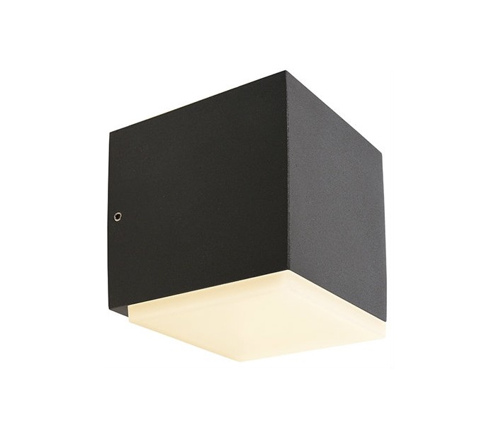 Moderne udendørs væglampe, udført i et design af antracitfarvet aluminimum. Lampen kommer med indbygget LED lyskilde på 5,5W.