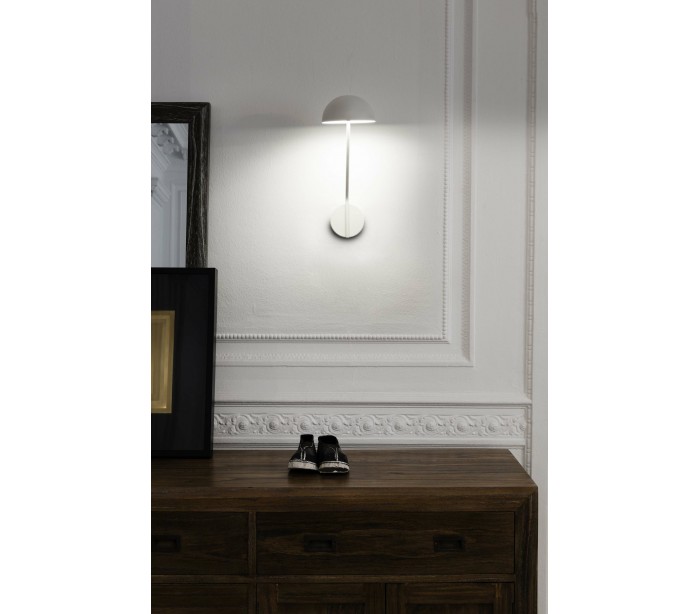 Væglampe i et moderne skandinavisk design, fremstillet i hvidlakeret aluminium. Lampen måler 41 cm i højden og anvender 1 x LED lyskilde på 6W (Inkl.).
