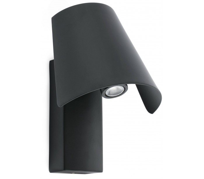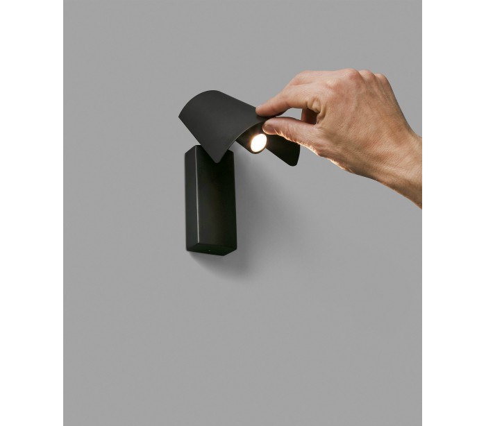 Væglampe i et moderne design, fremstillet i sortlakeret aluminium. Lampen måler 14 cm i højden og anvender 1 x LED lyskilde på 4W (Inkl.). Lampeskærmen kan justeres i retning.