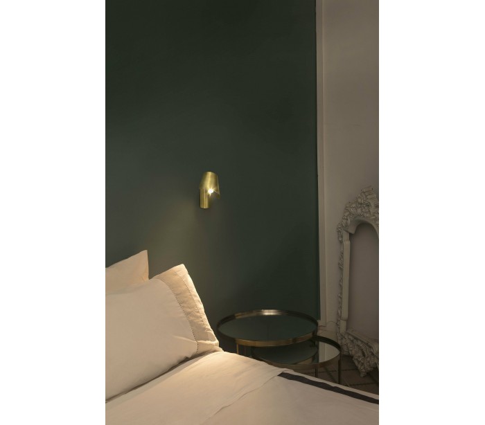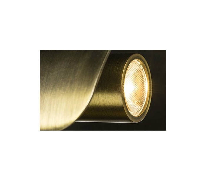 Væglampe i et moderne design, fremstillet i antik satineret guldlakeret aluminium. Lampen måler 14 cm i højden og anvender 1 x LED lyskilde på 4W (Inkl.). Lampeskærmen kan justeres i retning.