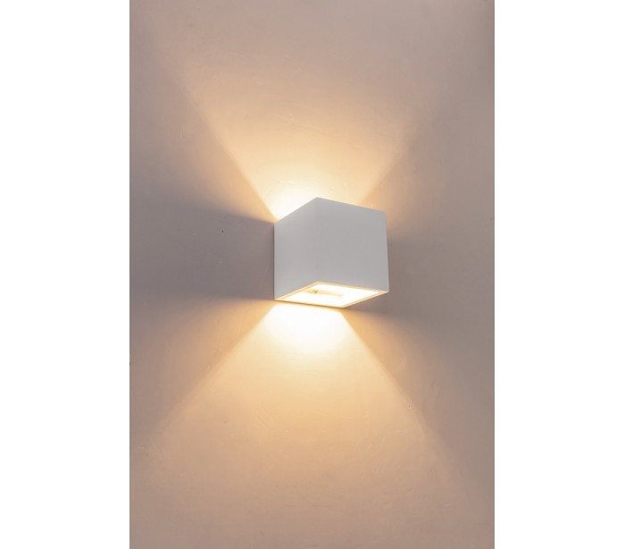 Moderne væglampe af hvid gips og med up-down belysning. Væglampen anvender 1 x G9 lyskilde (Ekskl.).