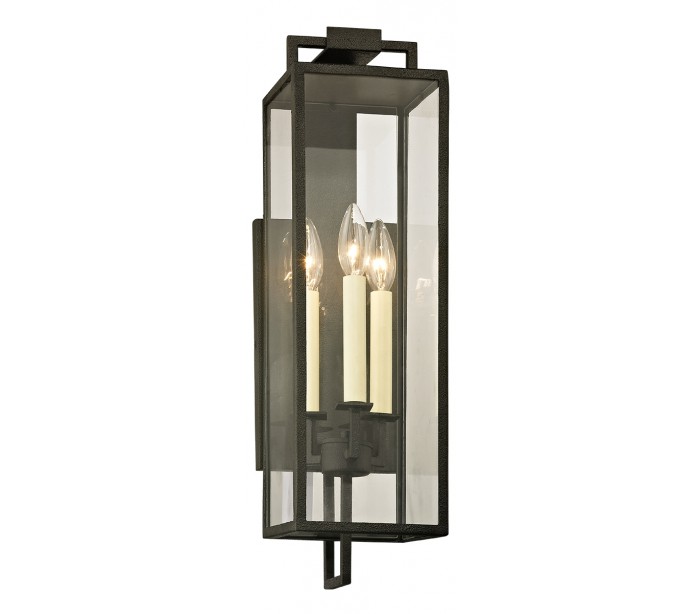 Beckham Væglampe i jern og glas H54,6 cm 3 x E14 - Antik sort/Klar