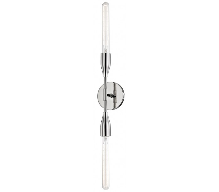 Tara væglampe i et design, fremstillet i poleret nikkel lakeret stål. Væglampen måler 76 cm i højden og anvender 2 x E27 T10 lyskilder.