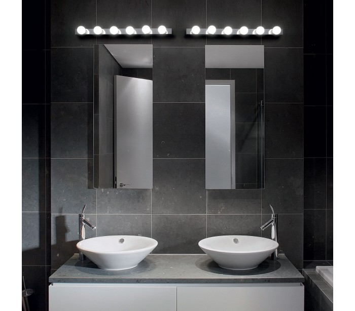 PRIVE væglampe i et moderne design fremstillet i kromlakeret metal. Lampen måler 80,5 cm i bredden og anvender 8 x E14 lyskilder (ekskl.).