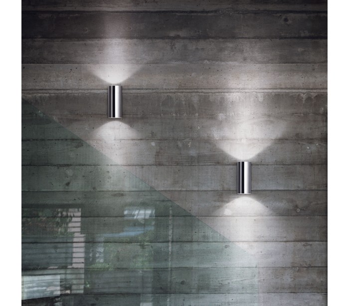 HOT væglampe i et moderne design fremstillet i kromlakeret metal med up/down belysning. Lampen måler 18 cm i højden og anvender 2 x GU10 lyskilder (ekskl.).