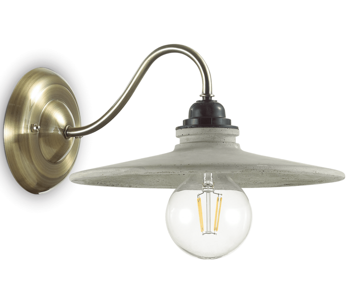 BROOKLYN væglampe i et industrielt design fremstillet i antik messinglakeret metal og grå beton. Lampen måler 13 cm i højden og anvender 1 x E27 lyskilde (ekskl.).