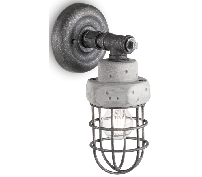 TNT væglampe i et industrielt design fremstillet i antik jerngrålakeret metal og grå beton. Lampen måler 31 cm i højden og anvender 1 x E27 lyskilde (ekskl.).