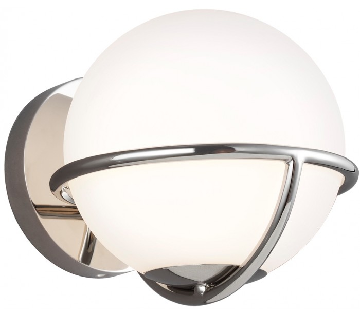 Apollo 1 væglampe i et moderne design, fremstillet i poleret nikkellakeret stål og med skærm i opalglas. Lampen måler 17,1 cm i højden, og anvender 1 x G9 LED lyskilde (Inkl.).