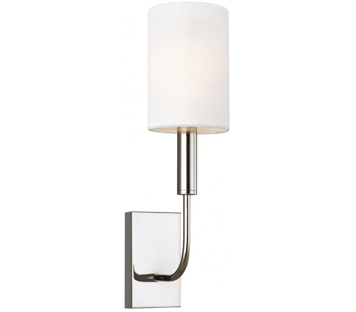 Brianna 1 væglampe i et moderne design, fremstillet i poleret nikkellakeret stål og med skærm i hvid linned. Lampen måler 35,9 cm i højden, og anvender 1 x E14 lyskilde (Ekskl.).