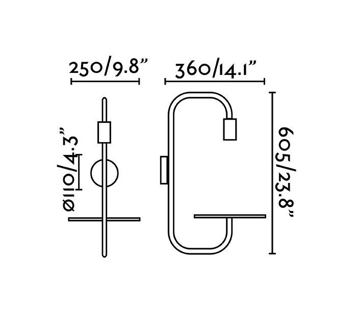 Væglampe i et moderne design, fremstillet i sortlakeret metal. Lampen måler 61 cm i højden og anvender 1 x E27 lyskilde på max. 20W (Ekskl.). Lampen kan anvendes med LED lyskilde.