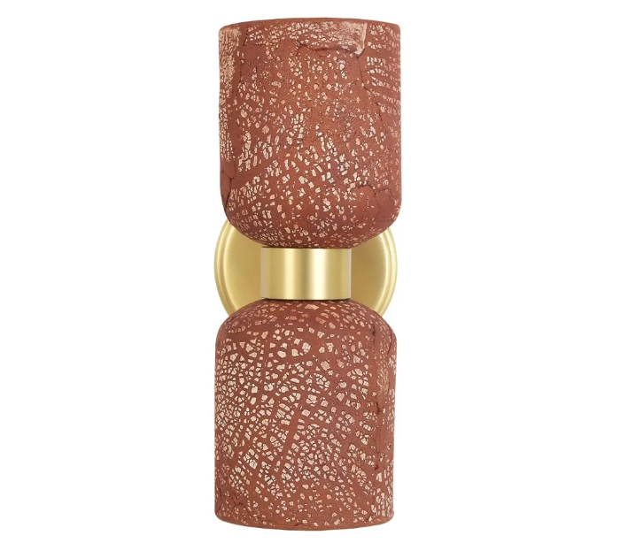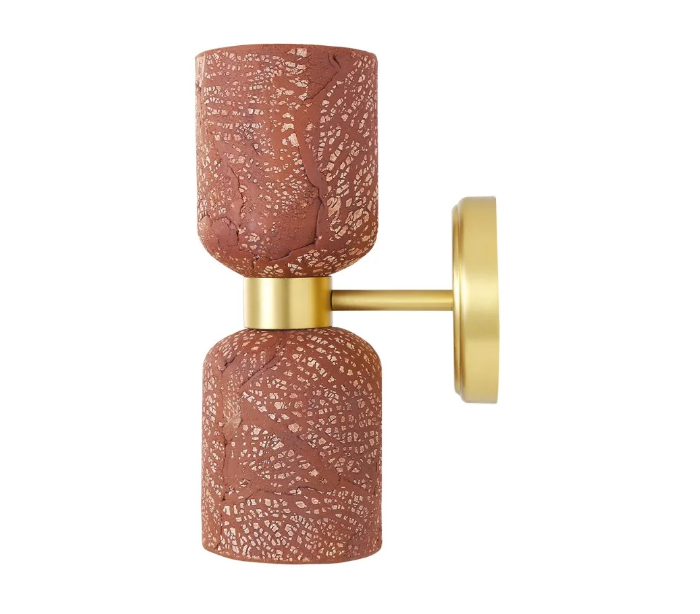 Sakura Væglampe H29 cm 2 x E27 - Satineret messing/Rustik rød