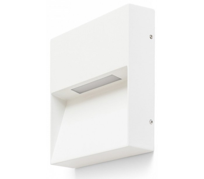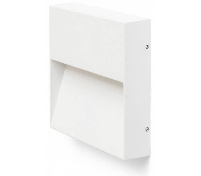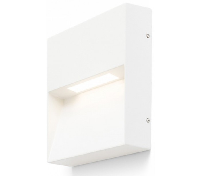 Aqila SQ udendørs væglampe udført i et moderne design af hvidlakeret metal med 6W LED lyskilde. Lampen måler 15 x 15 cm i bredde og højde.