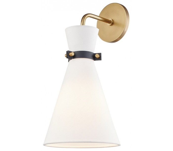 Julia Væglampe i stål og tekstil H43,2 cm 1 x E27 - Antik messing/Hvid