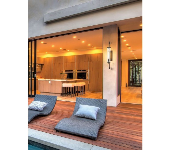 Park Slope udendørs væglampe udført i et design i sortlakeret jern og med skærm i klart glas. Lampen måler 53,4 cm i højden og anvender 1 x E27 T10 lyskilde.