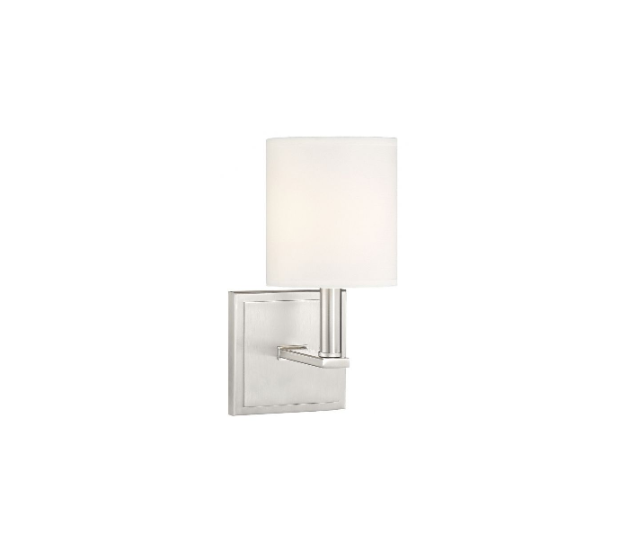 Waverly væglampe udført i et design af satineret nikkel lakeret stål og med skærm i hvid tekstil. Lampen er fra amerikanske Savoy House og anvender 1 x E14 lyskilde og måler 28 cm i højden og 13 x 17 cm i bredde og dybde/fremspring.