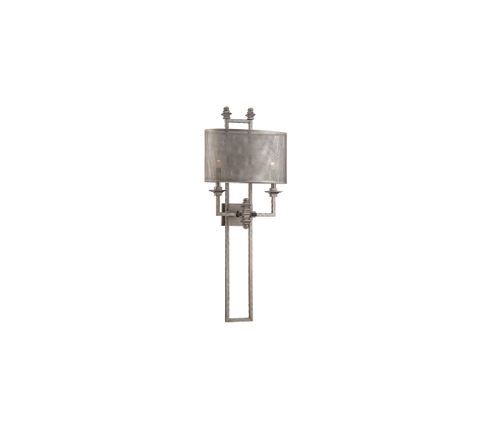Structure 2 væglampe udført i et design af antik stålgrå stål og med skærm i antik stålgrå mesh net. Lampen er fra amerikanske Savoy House og anvender 2 x E14 lyskilder og måler 100 cm i højden og 39 x 24 cm i bredde og dybde/fremspring.