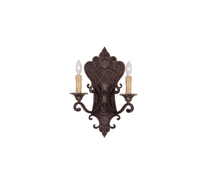 Southerby 2 væglampe udført i et design af antik bronzelakeret stål og med skærme i antik cremefarvet kunststof. Lampen er fra amerikanske Savoy House og anvender 2 x E14 lyskilder og måler 48 cm i højden og 34 x 15 cm i bredde og dybde/fremspring.