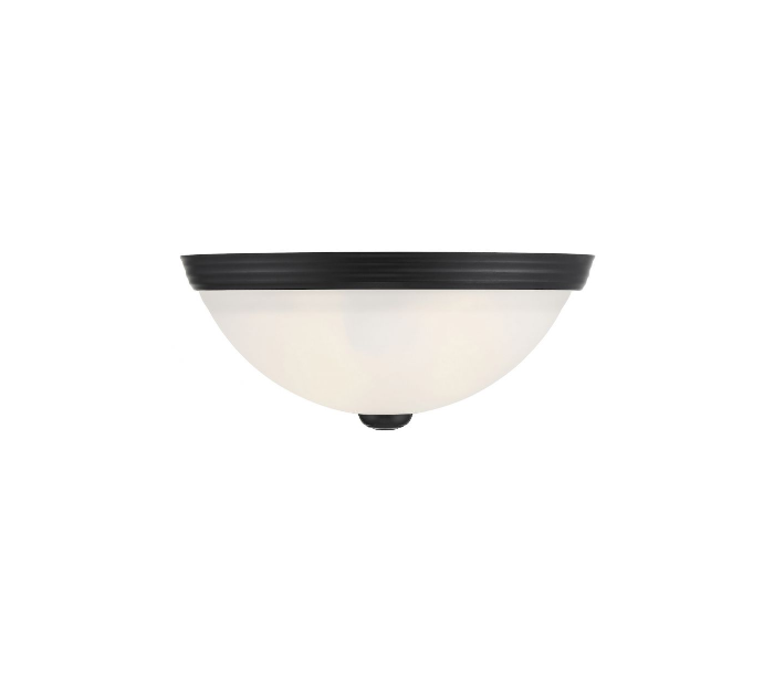 Halvrund væglampe udført i et design af mat sortlakeret stål og med skærm i hvid glas. Lampen er fra amerikanske Savoy House og anvender 2 x E27 lyskilder og måler 11 cm i højden og 28 x 12 cm i bredde og dybde/fremspring.