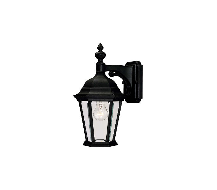 Wakefield 1 væglampe udført i et design af sortlakeret metal og klart glas. Lampen er fra amerikanske Savoy House og anvender 1 x E27 lyskilde og måler 39 cm i højden og 20 - 26 cm i bredde og dybde/fremspring.