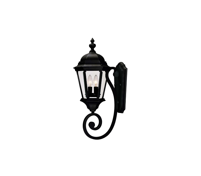 Wakefield 2 væglampe udført i et design af sortlakeret metal og klart glas. Lampen er fra amerikanske Savoy House og anvender 2 x E14 lyskilder og måler 63 cm i højden og 23 - 30 cm i bredde og dybde/fremspring.
